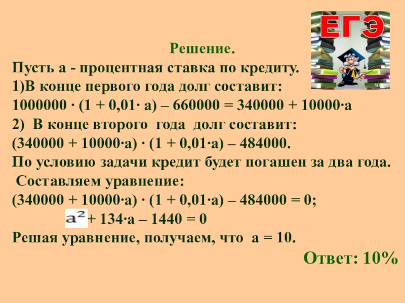 1000000 ∙ (1 + 0,01∙ а) – 660000 = 340000 + 10000∙а