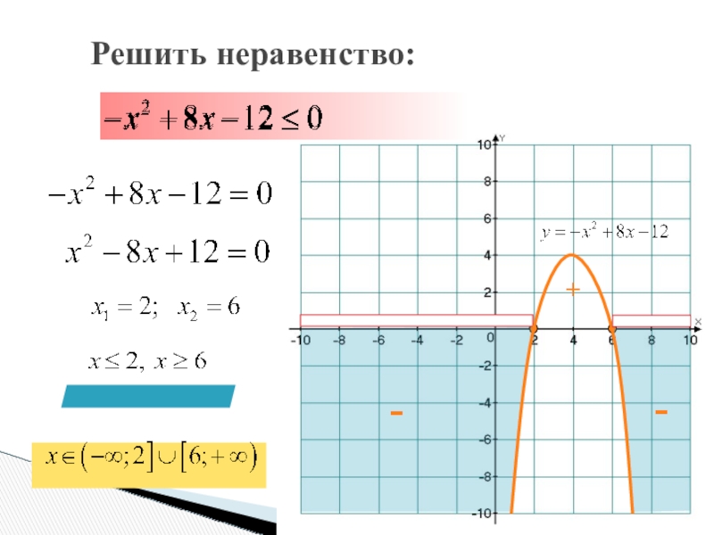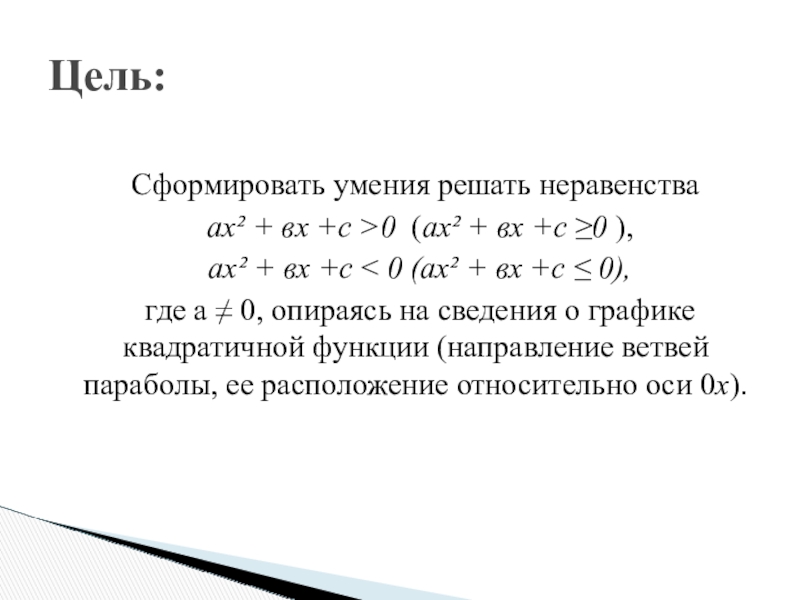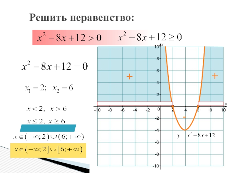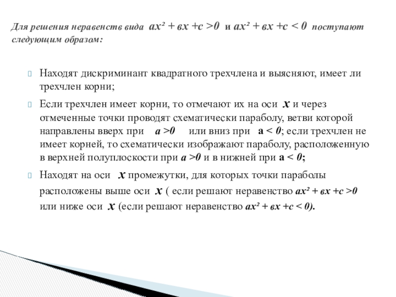 Для решения неравенств вида ах² + вх +с >0 и ах² + вх +с < 0 поступают следующим образом: