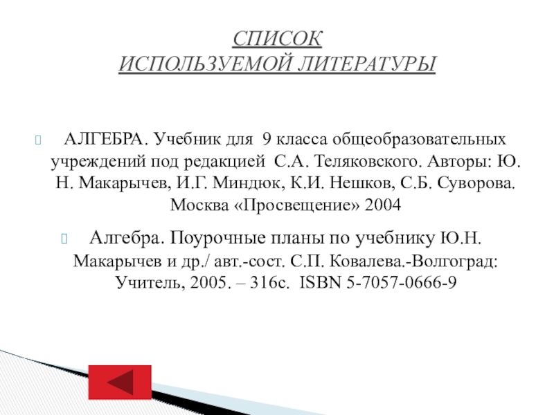 ИСПОЛЬЗУЕМОЙ ЛИТЕРАТУРЫ