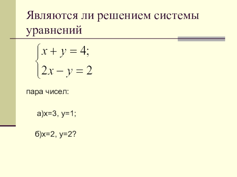 Являются ли решением системы уравненийпара чисел:     а)х=3, у=1;