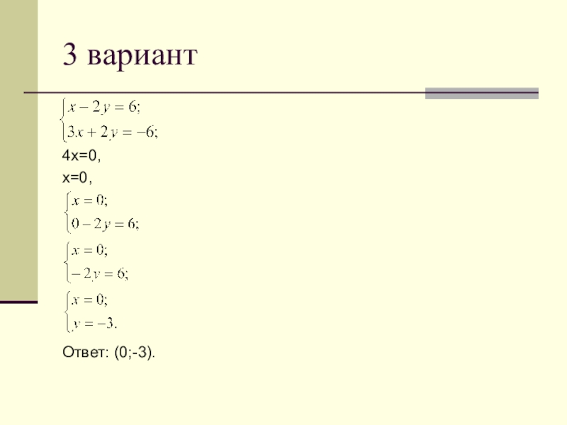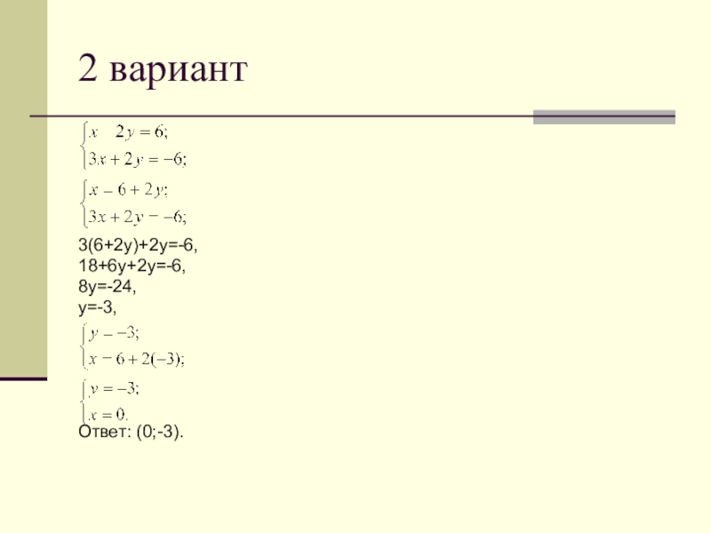 2 вариант3(6+2у)+2у=-6,18+6у+2у=-6,8у=-24,у=-3,Ответ: (0;-3).