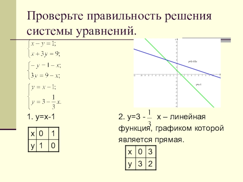 Проверьте правильность решения системы уравнений.1. у=х-1