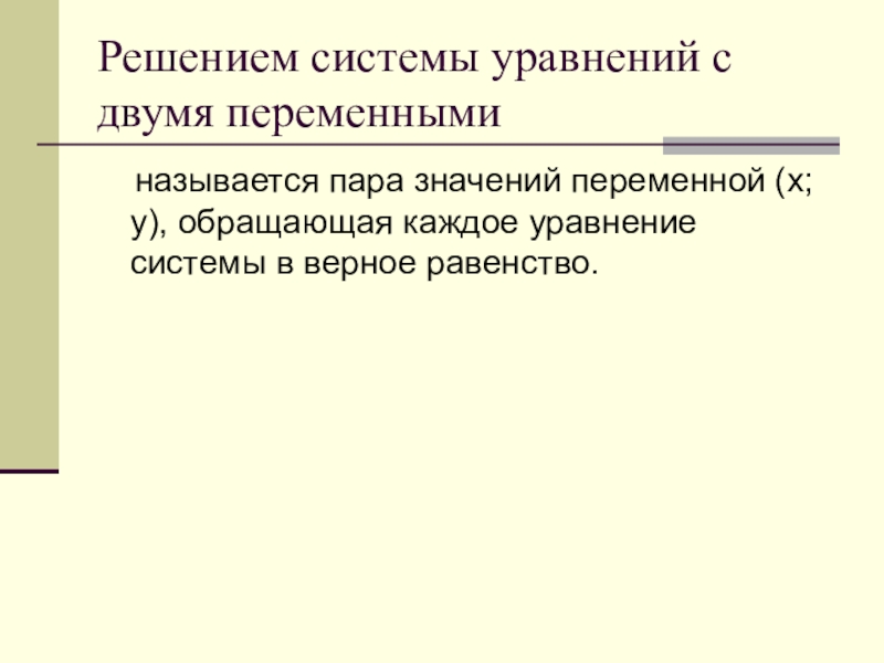Решением системы уравнений с двумя переменными  называется пара значений переменной (х;у), обращающая каждое уравнение системы в