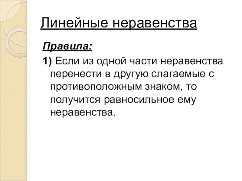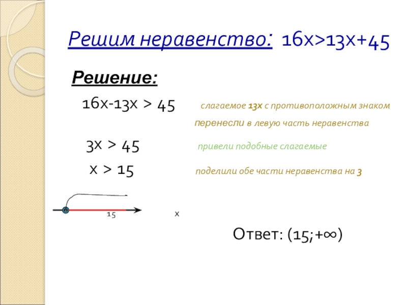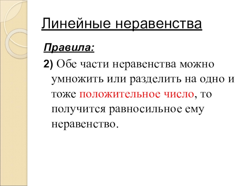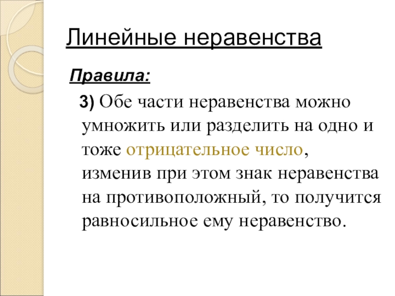 одно и тоже отрицательное число, изменив при этом знак неравенства на противоположный, то получится равносильное ему неравенство.