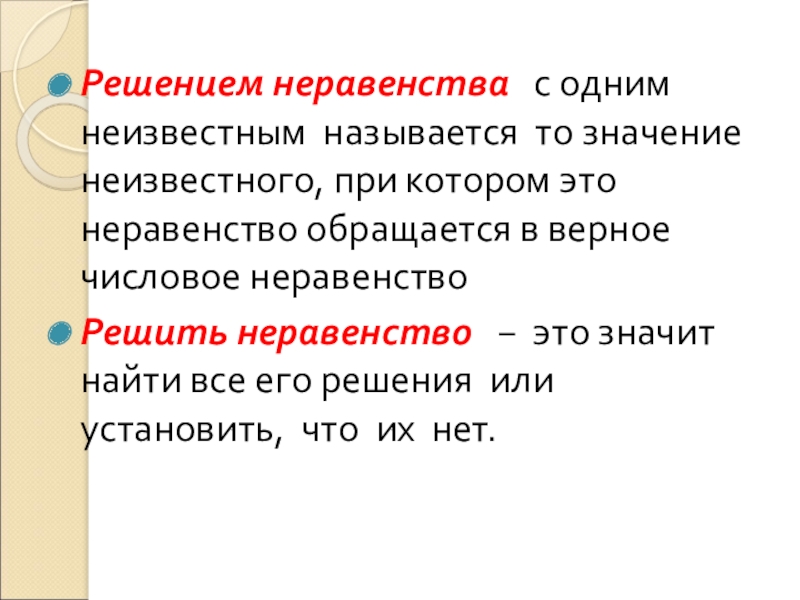 Решением неравенства с одним неизвестным называется то значение неизвестного, при