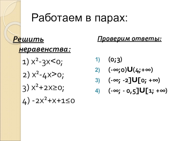 Слайд 38Решим квадратное неравенство методом интервалов: