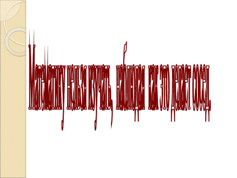 Слайд 2 Математику нельзя изучать, наблюдая как это делает сосед.