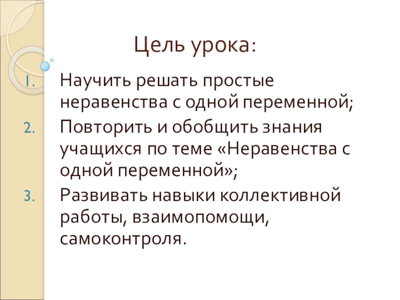 Тема урока: Решение неравенств с одной переменной. Решение систем неравенств