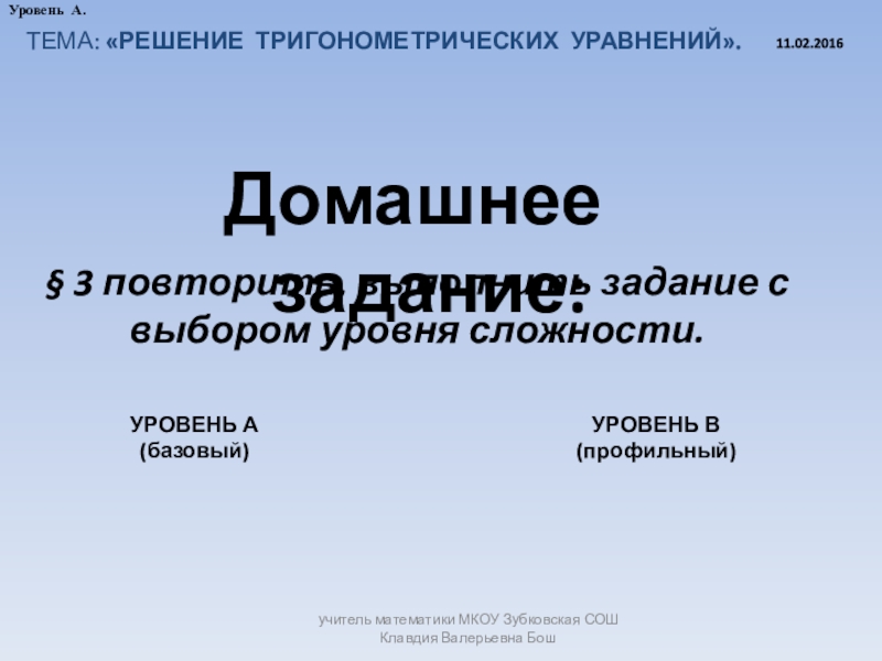 § 3 повторить, выполнить задание с выбором уровня сложности.