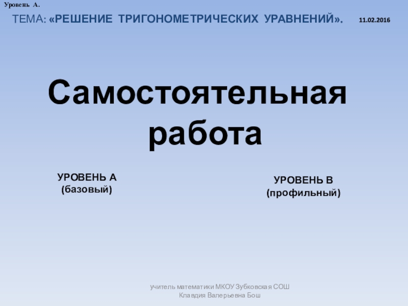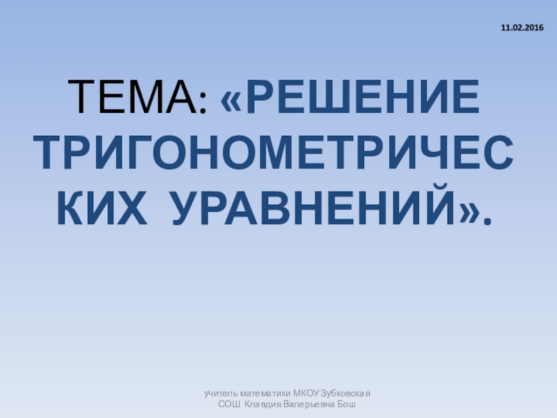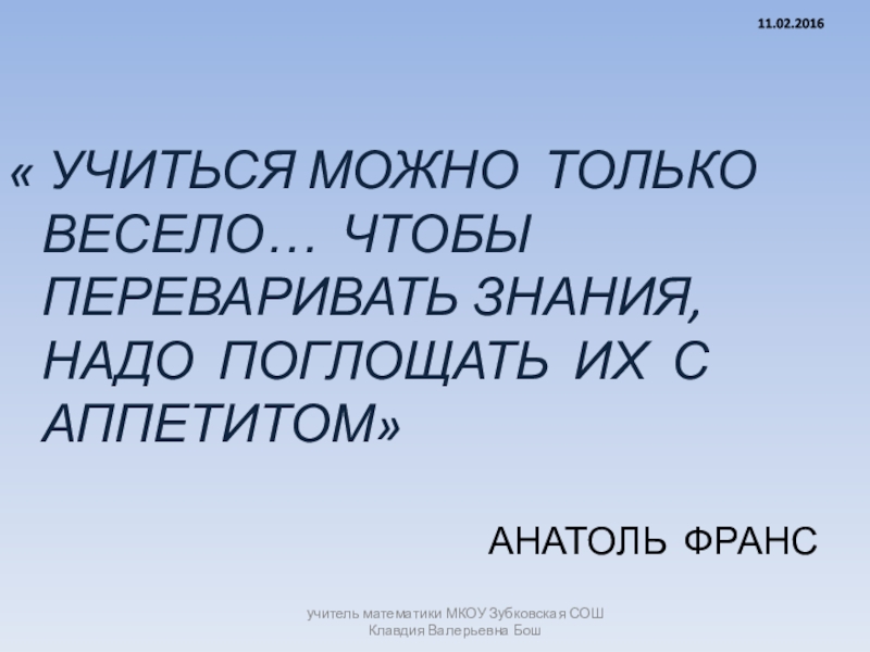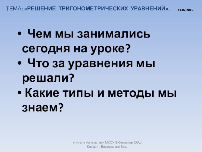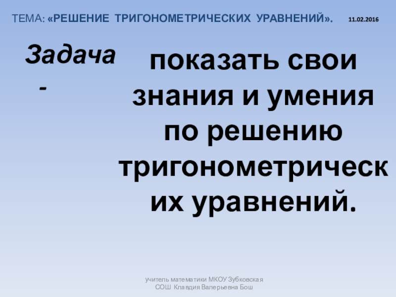 учитель математики МКОУ Зубковская СОШ Клавдия Валерьевна Бош