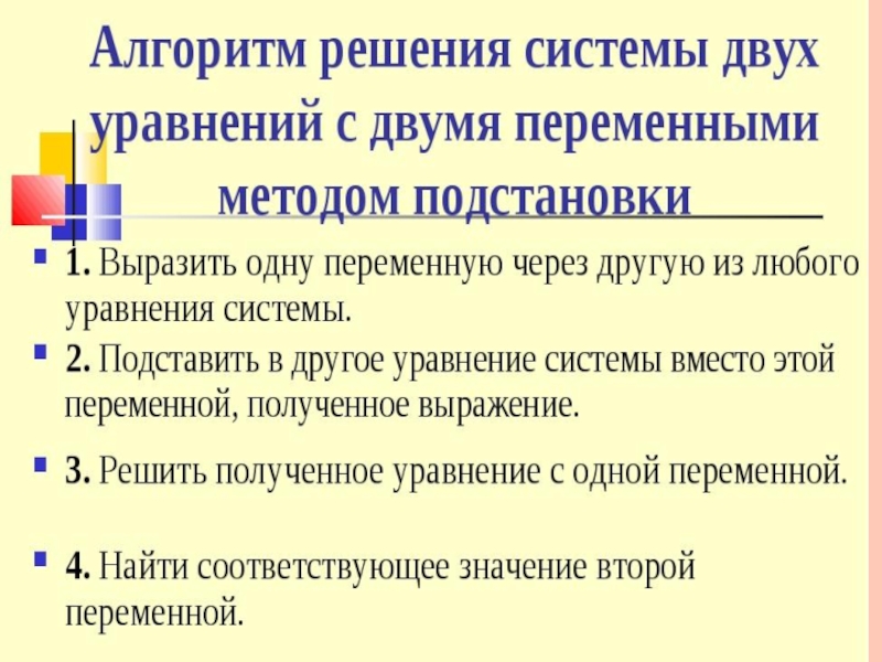 Презентация, доклад по математике на тему Решение систем уравнений способом подстановки.