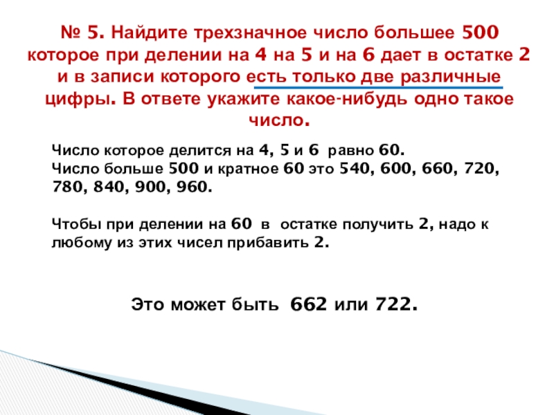 Число больше 500 и кратное 60 это 540, 600, 660, 720, 780, 840, 900, 960.
