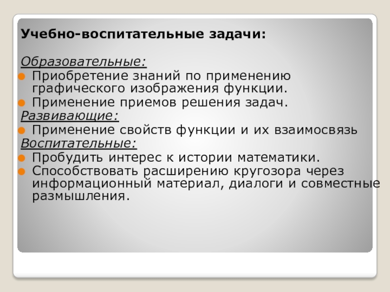 Формировать навыки и умения исследования функций простейшими способами