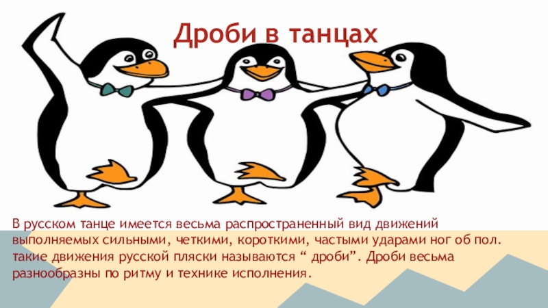 Дроби в танцахВ русском танце имеется весьма распространенный