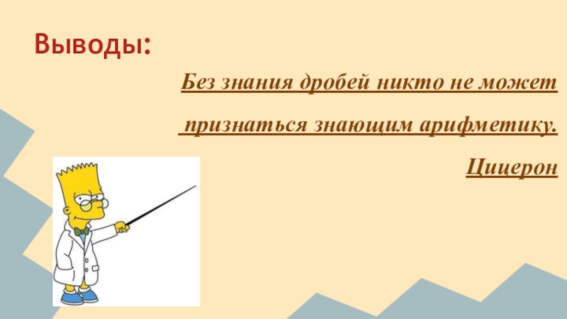 Выводы:Без знания дробей никто не может признаться знающим арифметику.Цицерон
