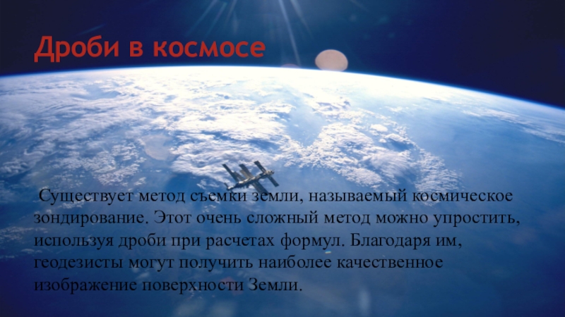 Существует метод съемки земли, называемый космическое зондирование. Этот очень сложный метод можно упростить, используя дроби при