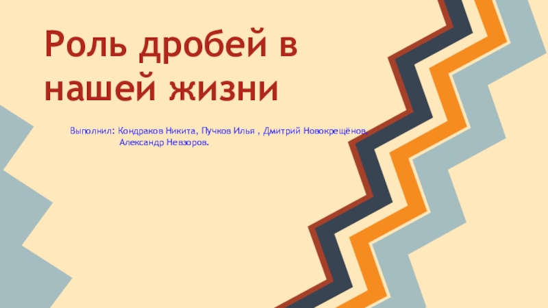 Роль дробей в нашей жизниВыполнил: Кондраков Никита, Пучков Илья , Дмитрий Новокрещёнов,