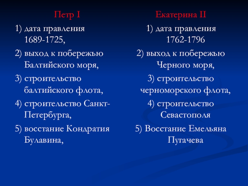 - сравнить успехи Екатерины Великой и Петра Великого.