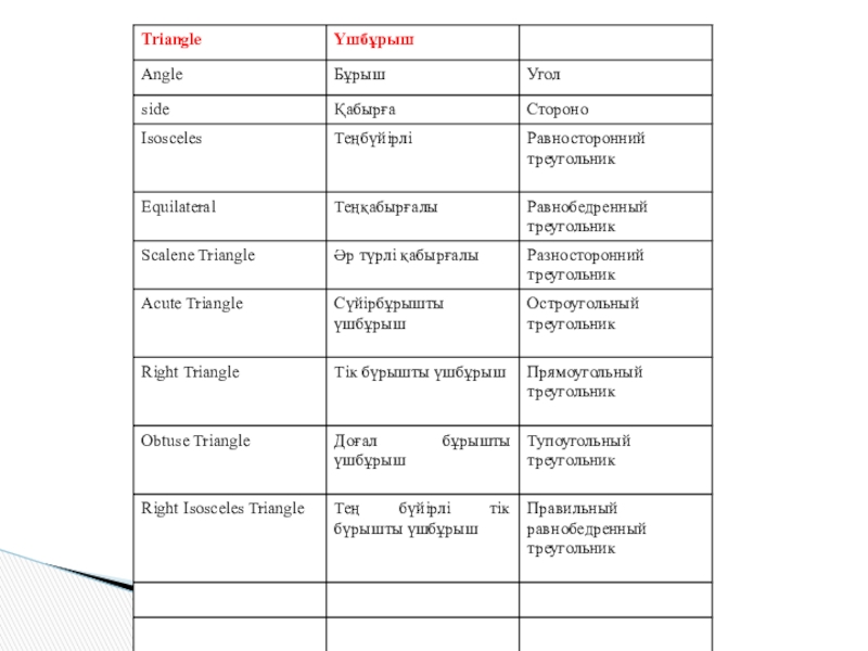 Презентация, доклад по математике на тему Үшбұрыш ағылшын тілінде (8 класс)