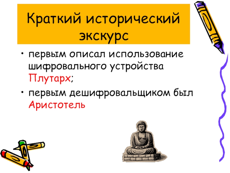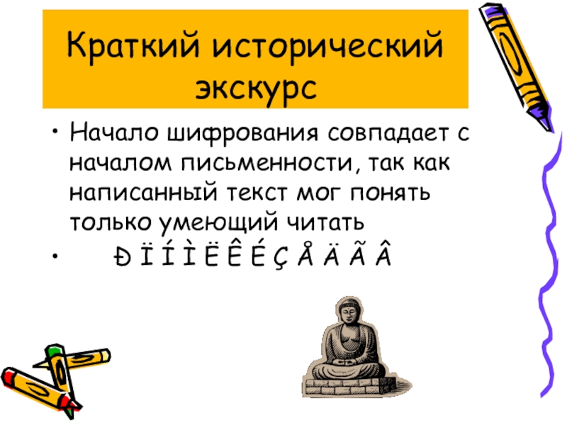 Начало шифрования совпадает с началом письменности, так как написанный