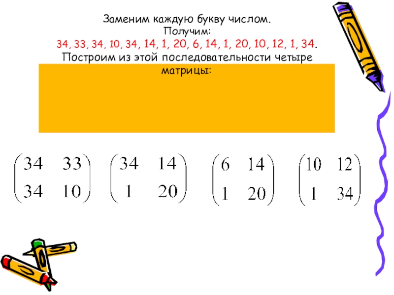 Слайд 15Зашифруем это сообщение с помощью ещё одной матрицы