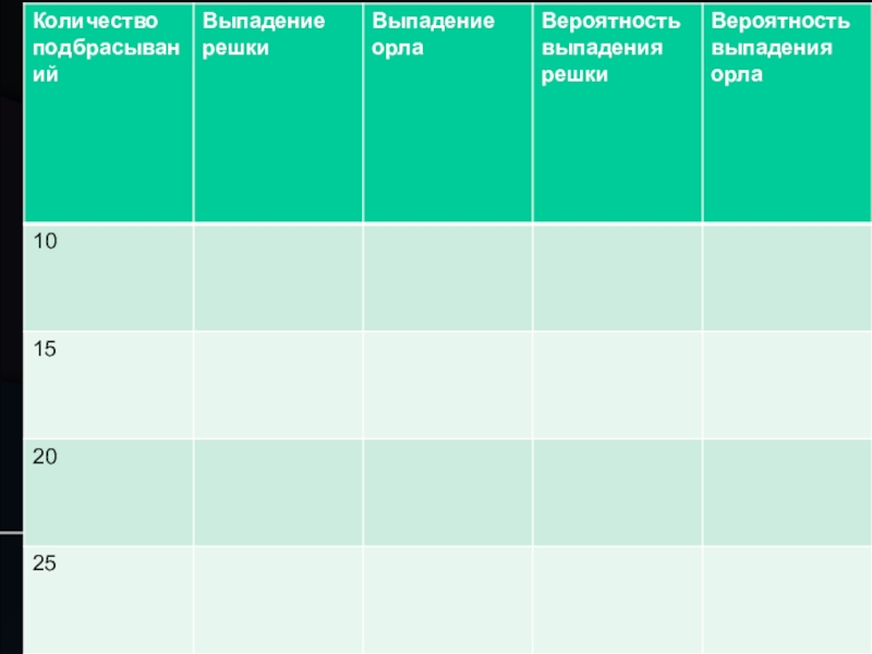 монетку и заполнить таблицу.