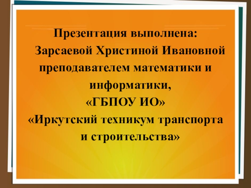 Слайд 1Презентация выполнена: Зарсаевой Христиной Ивановной