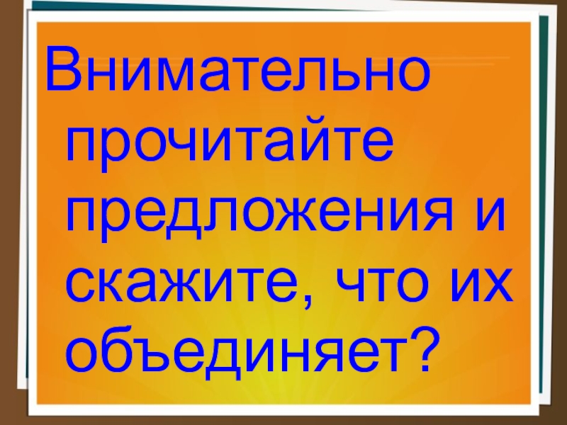Слайд 2Внимательно прочитайте предложения и скажите, что их объединяет?