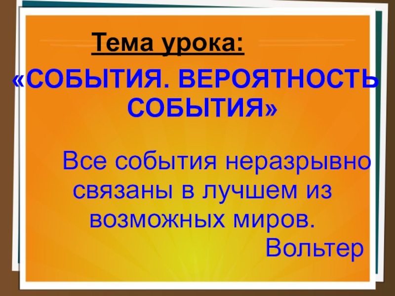 «СОБЫТИЯ. ВЕРОЯТНОСТЬ СОБЫТИЯ»