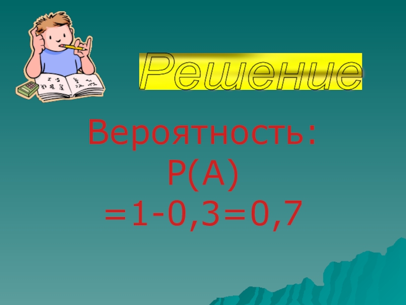 Вероятность: P(A) =1-0,3=0,7