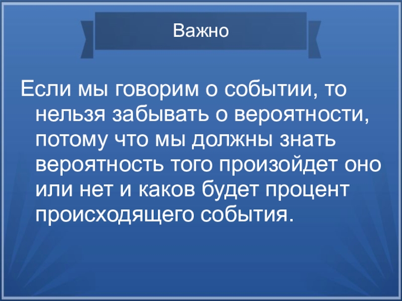 Если мы говорим о событии, то нельзя забывать о вероятности, потому