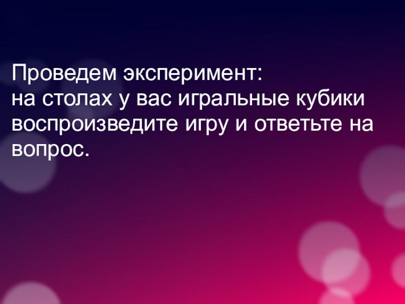 на столах у вас игральные кубики воспроизведите игру и ответьте