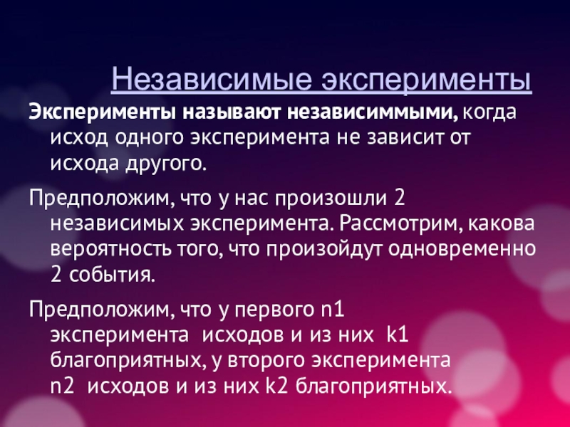 Слайд 20Независимые эксперименты