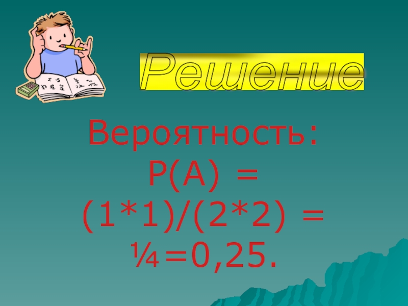 Вероятность: P(A) = (1*1)/(2*2) = ¼=0,25.