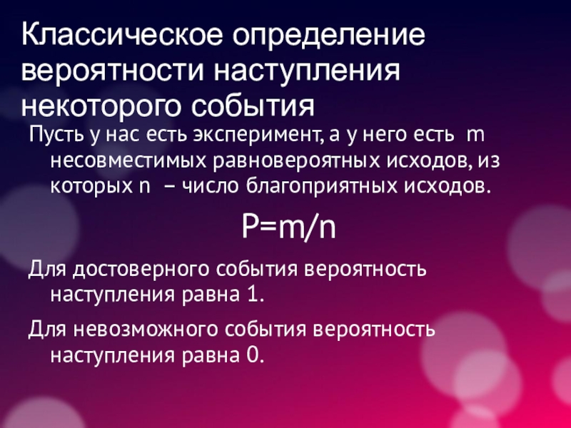 Слайд 17Классическое определение вероятности наступления некоторого события