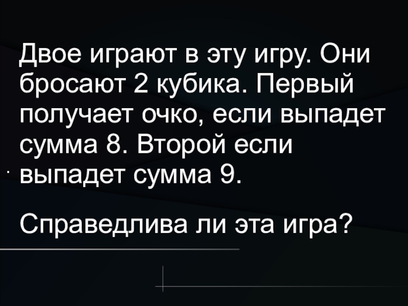 очко, если выпадет сумма 8. Второй если выпадет сумма 9.
