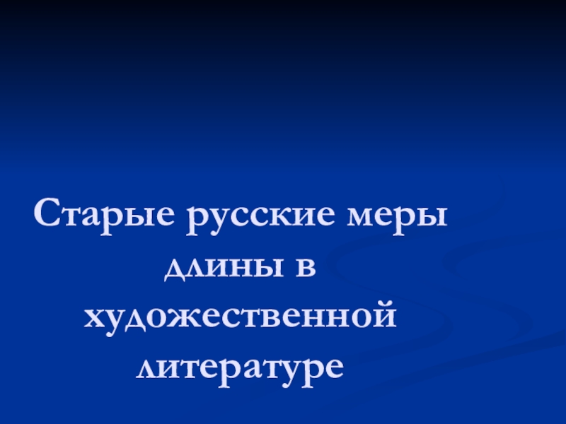 Презентация, доклад по математике на тему Старорусские меры длины в художественной литературы (10 класс)