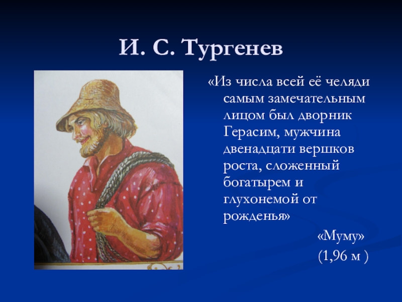 И. С. Тургенев «Из числа всей её челяди самым замечательным лицом был дворник Герасим, мужчина двенадцати вершков