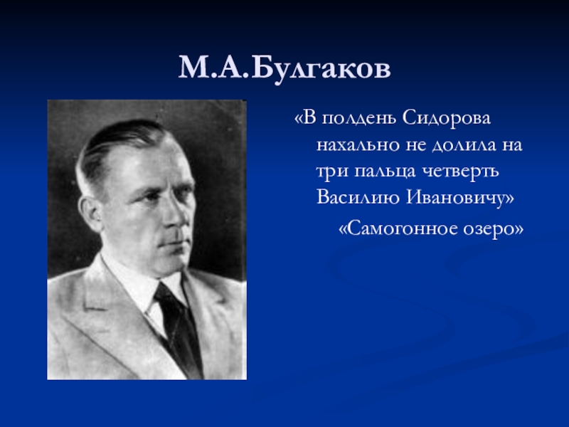М.А.Булгаков«В полдень Сидорова нахально не долила на три пальца четверть Василию Ивановичу»     «Самогонное