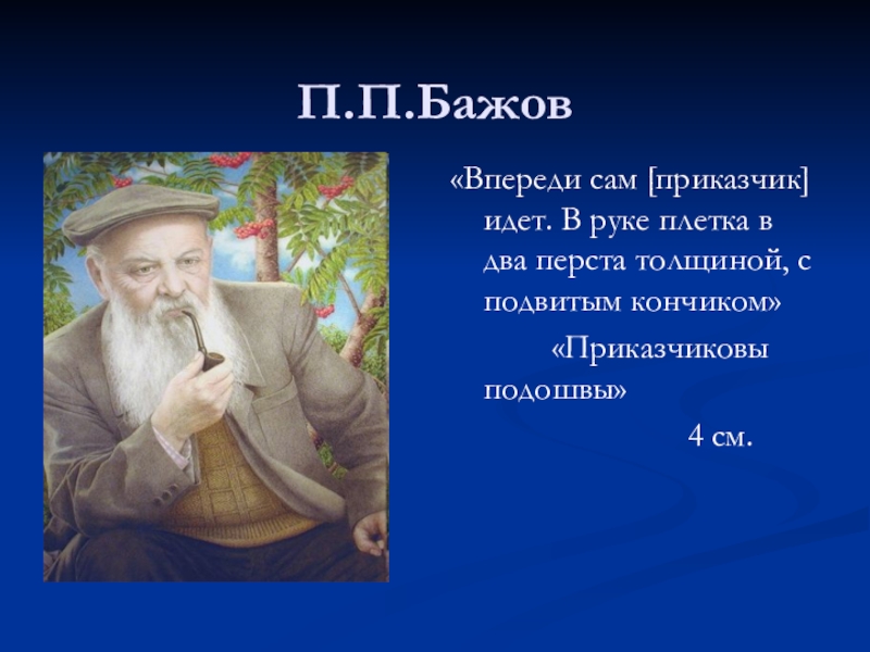 П.П.Бажов«Впереди сам [приказчик] идет. В руке плетка в два перста толщиной, с подвитым кончиком»