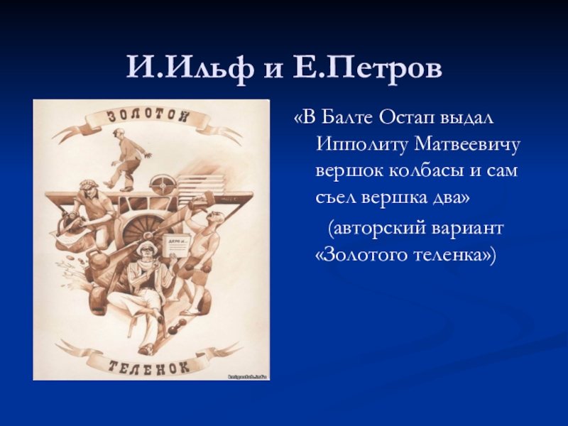 И.Ильф и Е.Петров «В Балте Остап выдал Ипполиту Матвеевичу вершок колбасы и сам съел вершка два»