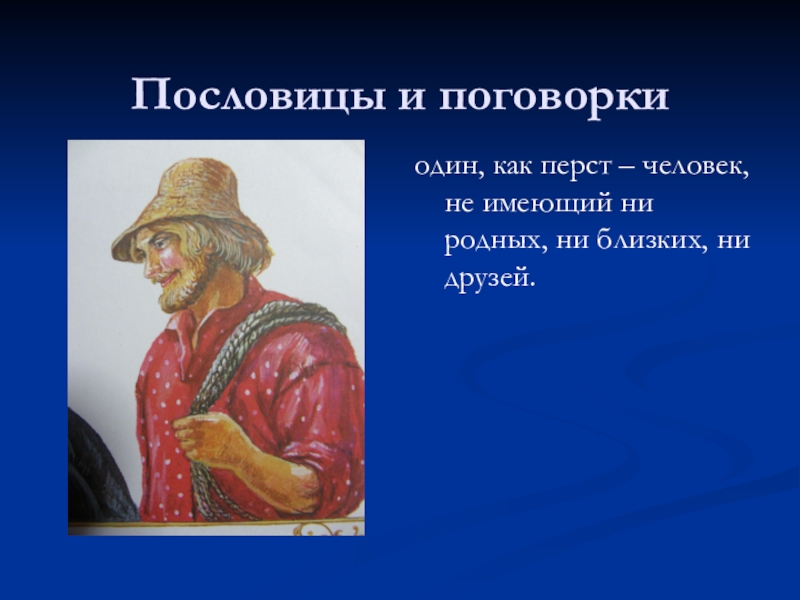 Пословицы и поговоркиодин, как перст – человек, не имеющий ни родных, ни близких, ни друзей.