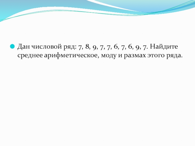 Слайд 7Дан числовой ряд: 7, 8, 9, 7, 7, 6, 7, 6,
