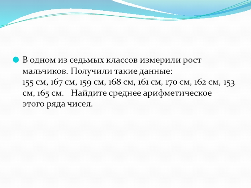 Слайд 5В одном из седьмых классов измерили рост мальчиков. Получили такие данные:
