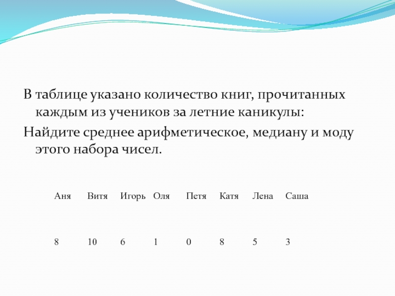 Слайд 9В таблице указано количество книг, прочитанных каждым из учеников за летние