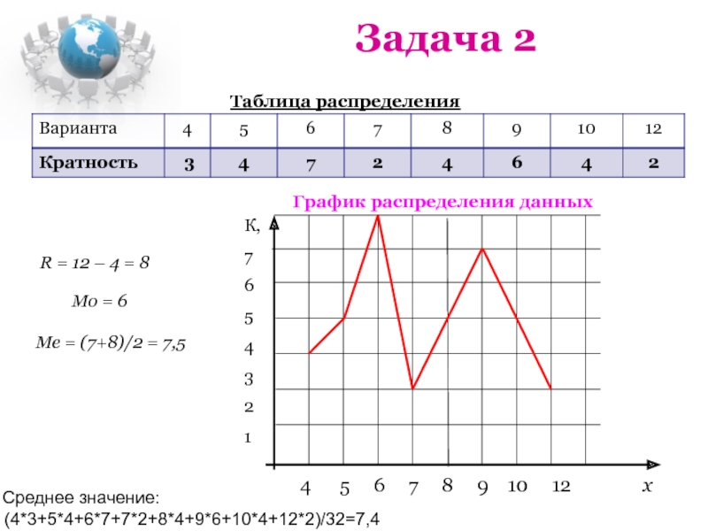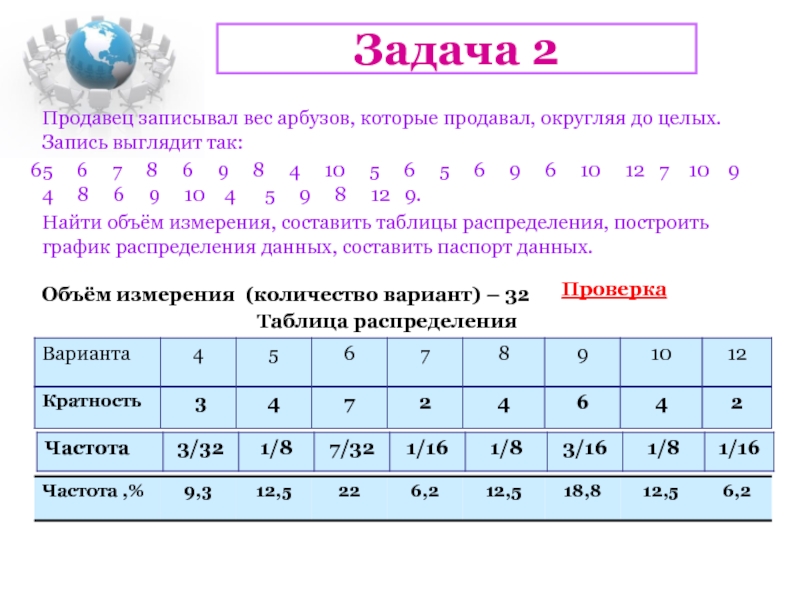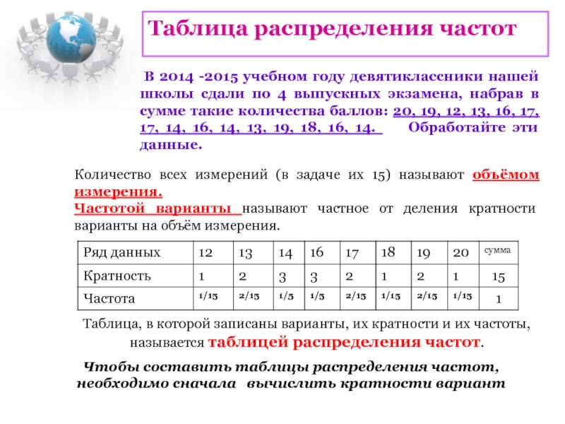 Таблица, в которой записаны варианты и их кратности, называется таблицей распределения