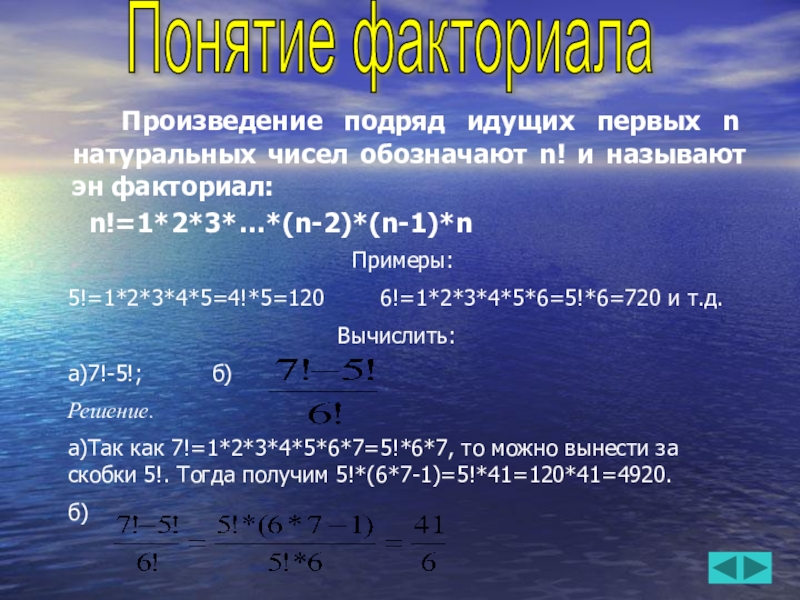 а)Так как 7!=1*2*3*4*5*6*7=5!*6*7, то можно вынести за скобки 5!. Тогда получим 5!*(6*7-1)=5!*41=120*41=4920.