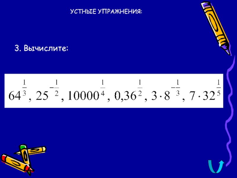 УСТНЫЕ УПРАЖНЕНИЯ:3. Вычислите: