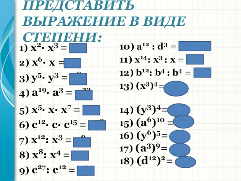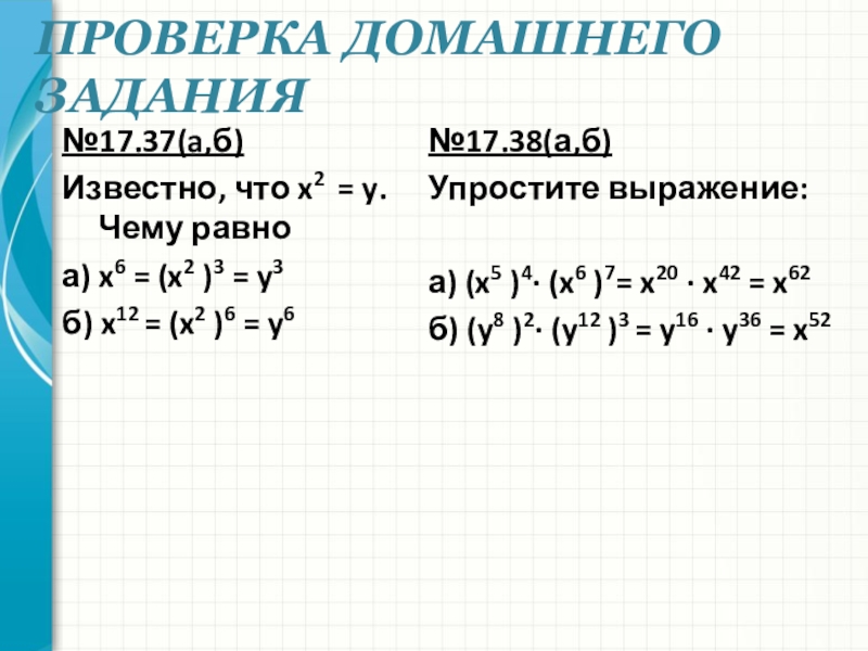 а) (x5 )4· (x6 )7= x20 · x42 = x62