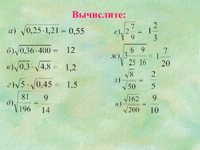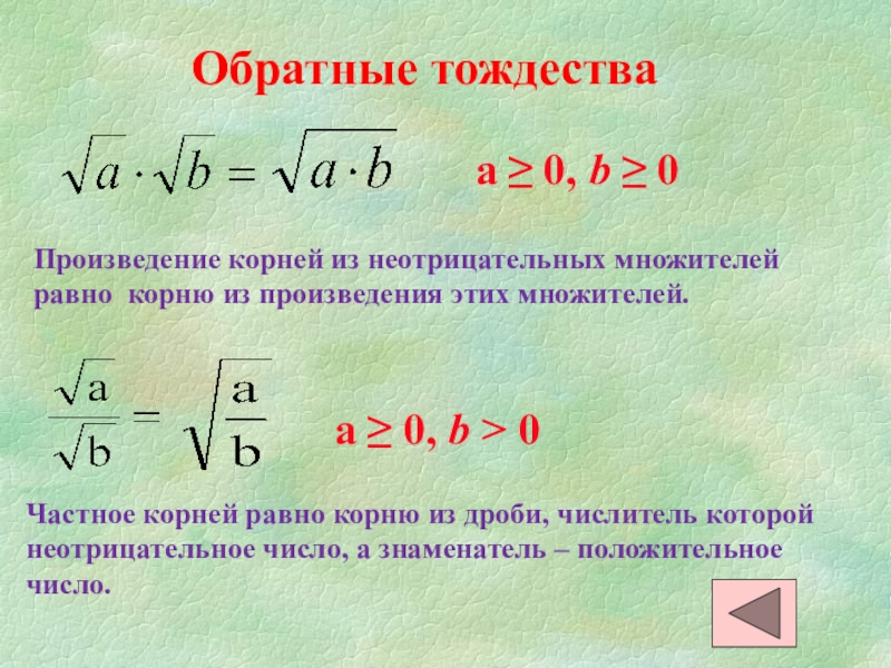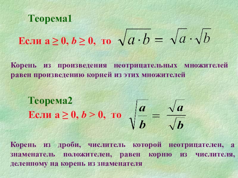 Произведение корней из неотрицательных множителей равно корню из произведения этих множителей.